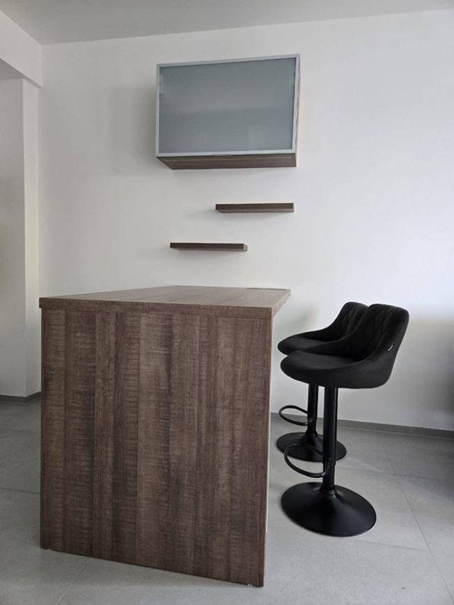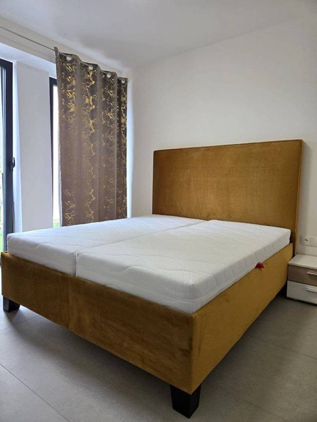 Nachádza sa na prvom (nie prízemie) poschodí, s orientáciou na Západ. Výmera čisto bytu je 42,26 m2 + balkón 5 m2 + pivničná kobka 5 m2 + výborné parkovacie možnosti v areáli. Všetko je nové čerstvo zariadené, ešte nepoužité (dolaďujú sa posledné drobnosti). Nehnuteľnosť sa ponúka zariadená: komplet kuchynská linka, (chladnička s mrazničkou objednaná), vstavaná mikrovlnka, el. varná doska 4-horáková, digestor, el. rúra, široká umývačka riadu, barové sedenie so stoličkami, gauč v obývačke, konferenčný stôl v obývačke, komoda v obývačke, v spálni luxusná nová posteľ s kvalitnými matracmi, nočné stolíky, štýlový tieniaci záves v spálni, šatníková skriňa v spálni, na chodbe komoda, vstavaná skriňa, ktorá je tesne pred dokončením. V kúpeľni je bezbariérový sprchový kút 140x80, WC Geberit, umývadlo so skrinkou, práčka, zrkadlo nad umývadlom.