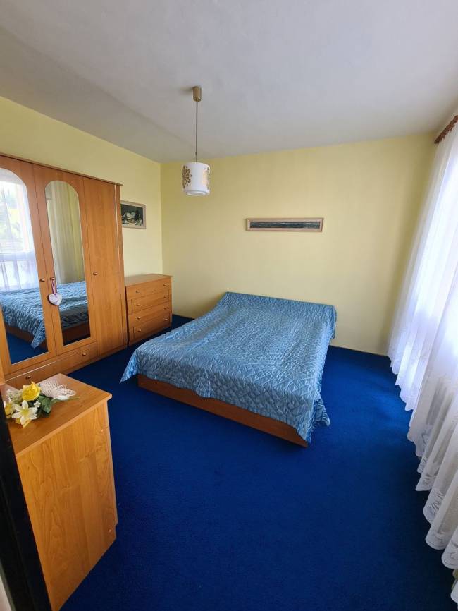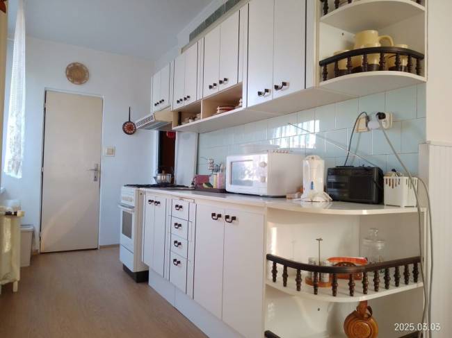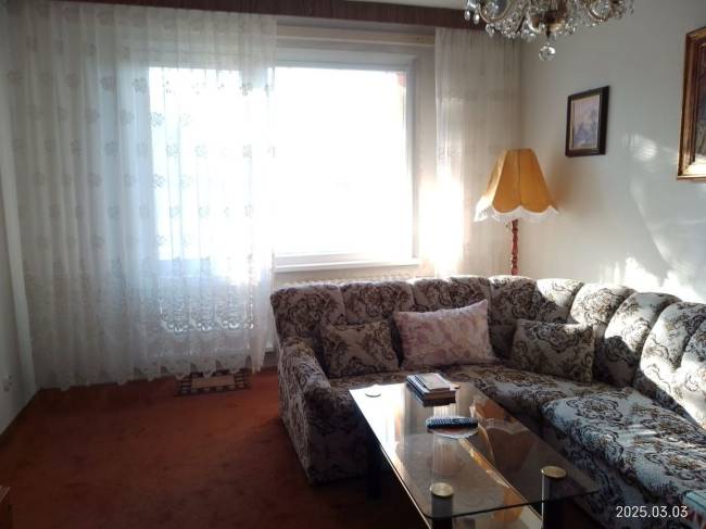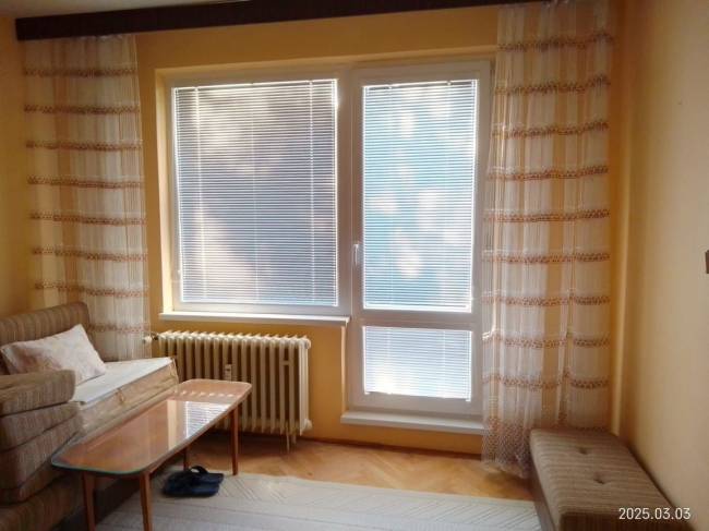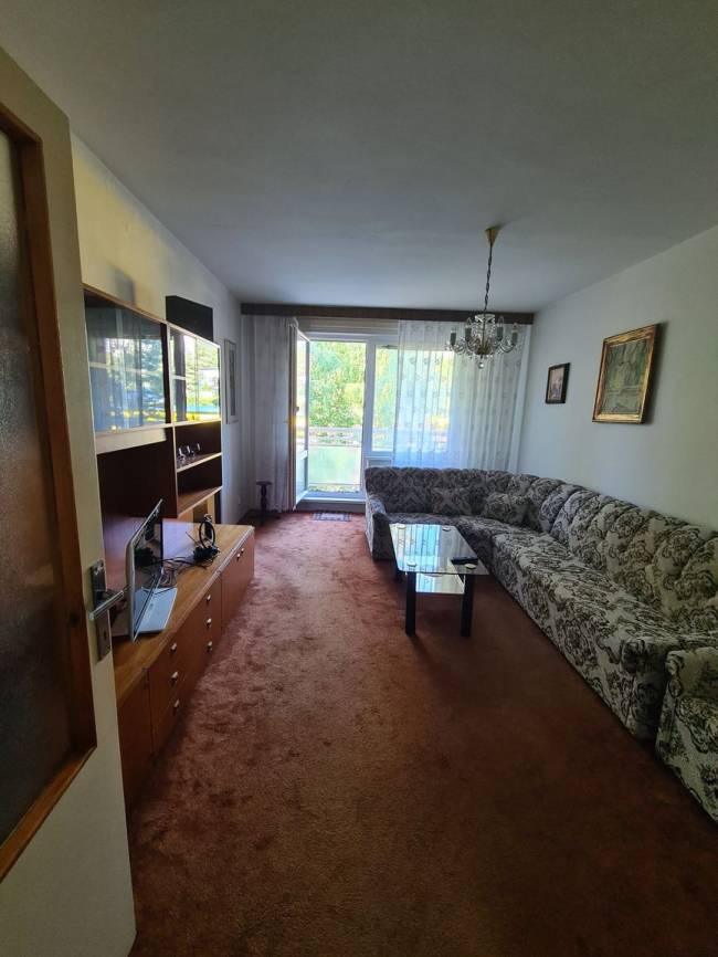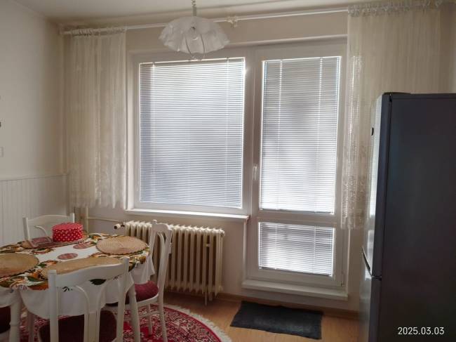 Informácie o byte: Okná sú plastové so žalúziami, podlahy v izbách sú pôvodné drevené parkety vo veľmi dobrom stave (sú na nich koberce), v jednej časti vŕzgajú (treba zrejme upraviť), v kuchyni je plávajúca podlaha, na chodbe a v samostatnej komore je linoleum, v kúpeľni a WC je dlažba. Steny aj stropy sú stierky (hladké), radiátory sú s meračmi tepla a sú liatinové (ústredné kúrenie). Kuchynská linka je zánovná vo veľmi dobrom udržiavanom stave. Varí sa na plyne s el. rúrou. Kúpeľňa je murovaná (staršieho dáta) pôvodne bolo umakartové jadro. Spoločná s WC. Zmenou dispozície si myslím, že by bolo možné dať WC aj samostatne. Obývačka a jedna izba sú prechodné. Interiérové bytové dvere sú pôvodné hladké s presklením. Bytové vchodové dvere sú pôvodné. Byt pôsobí veľmi dobrým dojmom je čistý, dobre udržiavaný napriek tomu, že je v pôvodnom staršom stave.