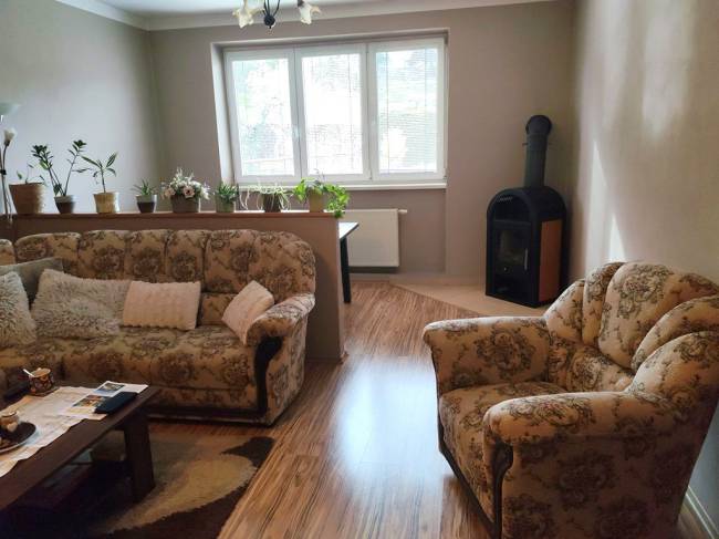 Veľmi zaujímavá ponuka zrekonštruovaného 3-izbového bytu s veľkorysou výmerou 91 m2, ktorý očarí každého kto hľadá bývanie v tichom a zelenom prostredí. Tento byt sa nachádza v kúpeľnom meste Brusno a z lodžie je pekný výhľad na rieku Hron. Prešiel kompletnou rekonštrukciou vrátane nových elektrických rozvodov a praktickou zmenou dispozície. Nachádza sa na 1. podlaží v len 2-podlažnom bytovom dome. Pod oknami nie sú chodníky, ale zeleň a park so stromami a detským ihriskom, ktoré sú vo vlastníctve obyvateľov bytového domu. K dispozícii je aj kočikáreň. Bytový dom má Spoločenstvo vlastníkov bytov a spravujú si bytový dom sami. Každý byt má vlastné samostatné kúrenie plynovým kotlom a každý byt si aj sám ohrieva vodu. V byte je aj piecka na tuhé palivo. K bytu prislúcha aj pivnica. Byt sa predáva zariadený (podľa priložených fotiek ) a po dohode s majiteľom bytu a je kúpou voľný. Byt pozostáva s predsiene, 3 izieb, peknej kuchyne, komory (špajze), kúpeľne so sprchovým kútom, WC a lodžie. Energetický certifikát zatiaľ nie je vystavený. Do kúpnej ceny je zahrnutá aj odmena realitnej kancelárie. Nehnuteľnosť je vedená pod evidenčným číslom: 3900 Všetky podrobné informácie ako aj obhliadku nehnuteľnosti zabezpečuje Marta Bušfyová. Kontakt: 0903 246 649