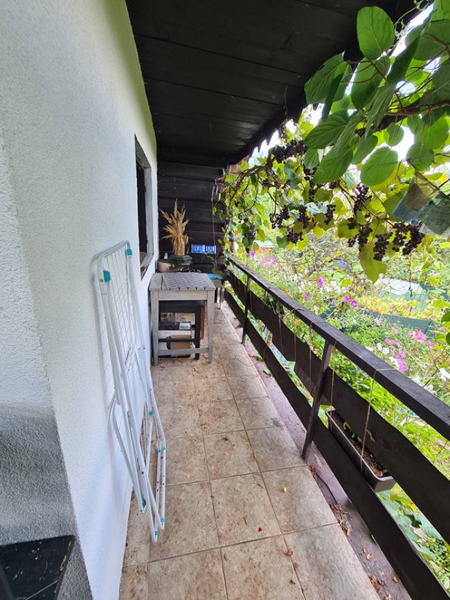 Záhrada: na pozemku sa nachádzajú ovocné stromy, hrozno, ovocné kríky, ozdobné rastliny, živý plot, trávnatá plocha, bylinky, kvetiny, spevnený chodníček, priestor na bazén+trampolínu, lavička pod stromom, altánok s príjemným posedením.
