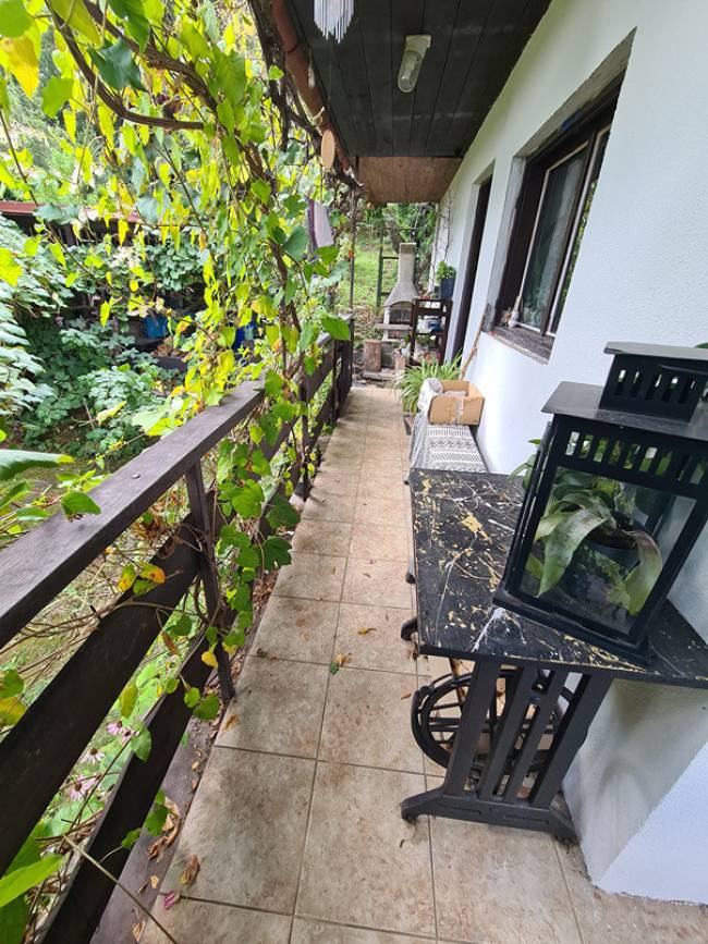 V spodnej časti je pivnica, ktorá momentálne slúži ako sklad. Sú tam 3 miestnosti. Tento priestor je možné využívať aj ako letnú kuchyňu. Po pár schodíkoch sa dostanete cez gang, ktorý je do tvaru L po obvode do hlavnej obytnej časti (spodná časť) kde je denná miestnosť s kuchynskou časťou a kúpeľňa s WC. Po schodisku sa dostanete do podkrovia, kde je jedna veľká miestnosť (využívaná ako spálňa) s výstupom na priestrannejší balkón.