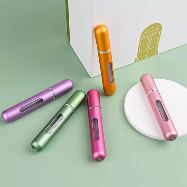Plniteľná prenosná kozmetická fľaštička, flakón na parfémy opätovne plniteľná. Mini fľaštička s parfémom v spreji je dostatočne malá a ľahká, aby sa dala vložiť do vrecka alebo kabelky, takže si každú chvíľu užijete nádhernú vôňu. Keď sa zúčastňujete večierku, trávite čas na dovolenke alebo na služobnej ceste, je to skvelý nástroj, ktorý vám dodá sviežu vôňu a sebavedomie. Malý otvor rozprašovača na zníženie odpadu parfumu a jemnejší sprej Veľkosť rúžu, dostatočne malá a ľahká, aby sa dala vložiť do vrecka alebo kabelky Znovu plniteľný dizajn, recyklovateľný a ekologický Pohodlné prenášanie a udržiavanie, jednoduché použitie, vhodné na párty, cestovanie, outdoorové aktivity.