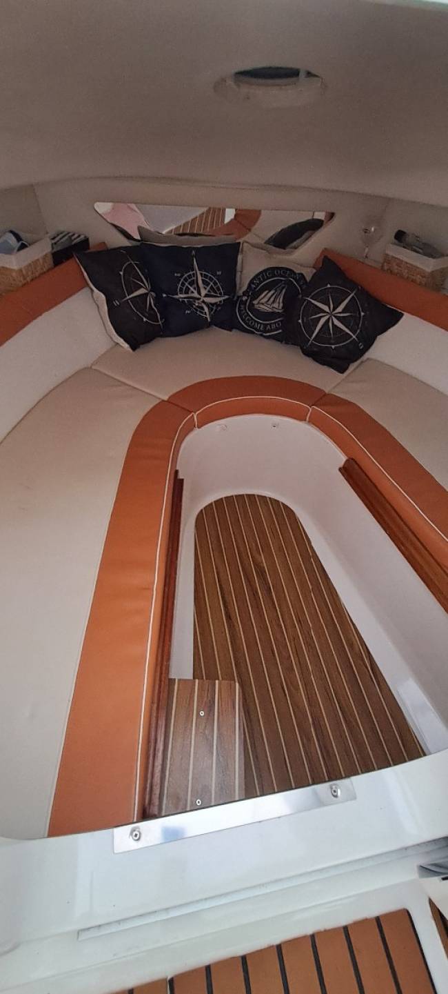 Čistá a zachovalá kajutová lod Quicksilver 620 Cruiser + motor Mercury 115hp EFI pr. 2020, najetých iba 180hod. K lodi je komplet BIMINI s bočnicami. Ide o model s perfektným vyvážením priestoru, hmotnosti a ceny. Loď prevážam na vleku 1800kg. Kajuta pojme 2 dospelých + dieťa, prípadne je možné použiť ďalšie rozkladacie lôžko na palube. Odvetranie kajuty uzatvárateľným oknom, osvetlenie, kvalitná hudba so zosilňovačom, USB zásuvky, guľatá 12V, úložné priestory. Pozičné osvetlenie, komplet bimini, prevozná plachta, odnímateľný stolík a sedačky, rozkladacie opaľovacie lôžko, pod palubou je veľký úložný priestor prístupný aj z kajuty, priestor pre chladničku. Odnímateľná kuchynka s varičom. Palubná sprcha, nádrž 67 litrov na vodu, nádrž na palivo 135litrov, automatické čerpadlo, 2x batéria, hydraulické riadenie, el. kotevný naviják na diaľkové ovládanie s reťazom, nerez zábradlie, nerez rebrík, keramická splachovacia toaleta – ktorá sa nepoužívala, miesto pre chemickú toaletu, GPS + echo, húkačka, celá paluba s príjemným EVA teakom, čistá a zachovalá loď na okamžité užívanie bez ďalších investícií. Celková dĺžka lode bez motora je 665 cm, registrované na SPS, vr. poistenia. Cena za loď s motorom 115hp je 34 000, - EUR. Teraz po zľave cena 28 000,00 EUR